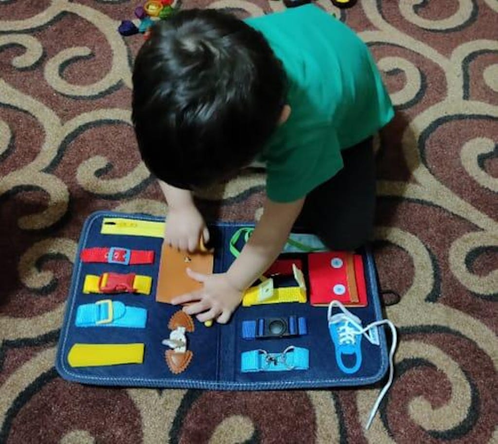 Ontdek een wereld vol plezier en educatie! Met dit Montessori Activiteitenbord leert je kind klokkijken, veters strikken, ritsen sluiten en nog veel meer. Perfect om de fijne motoriek, zelfstandigheid en concentratie te stimuleren — thuis én onderweg.